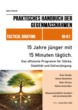 Dieses Tactical Briefing zeigt Ihnen, wie Sie mit minimalem Aufwand und minimalem Verletzungsrisiko Ihren Körper stark, fit und beweglich machen. Und innerhalb eines Jahres das biologische Alter Ihres Herz-Kreislauf-Systems um 10 – 15 Jahre verjüngen können. Dieses Programm ist so erfolgreich, weil es eine synergetische Kombination aus effizientem Krafttraining, strategischer Ernährung und verhaltenspsychologisch klugen Routinen darstellt.